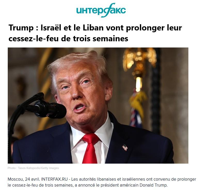 Les autorités libanaises et israéliennes ont convenu de prolonger le cessez-le-feu de trois semaines, a annoncé le président américain Donald Trump.