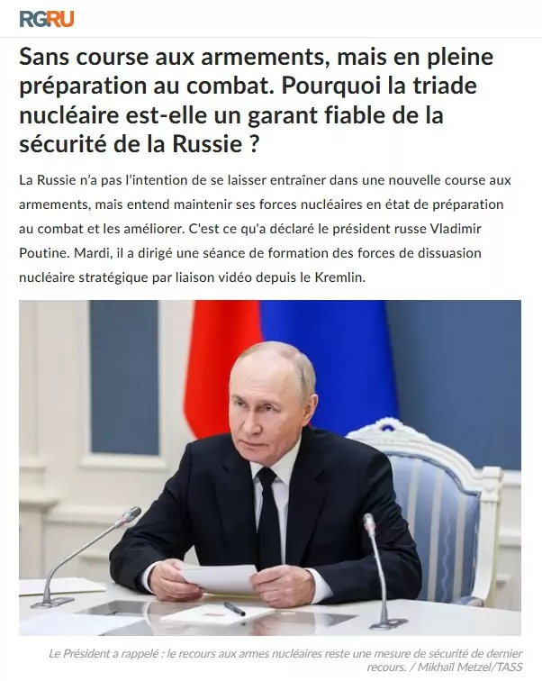 La Russie n’a pas l’intention de se laisser entraîner dans une nouvelle course aux armements, mais entend maintenir ses forces nucléaires en état de préparation au combat et les améliorer. C’est ce qu’a déclaré le président russe Vladimir Poutine. Mardi, il a dirigé une séance de formation des forces de dissuasion nucléaire stratégique par liaison vidéo depuis le Kremlin.