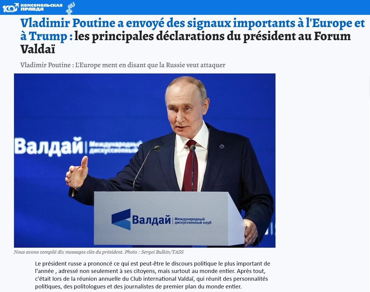 Le président russe a prononcé ce qui est peut-être le discours politique le plus important de l’année, adressé non seulement à ses citoyens, mais surtout au monde entier. Après tout, c’était lors de la réunion annuelle du Club international Valdaï, qui réunit des personnalités politiques, des politologues et des journalistes de premier plan du monde entier.