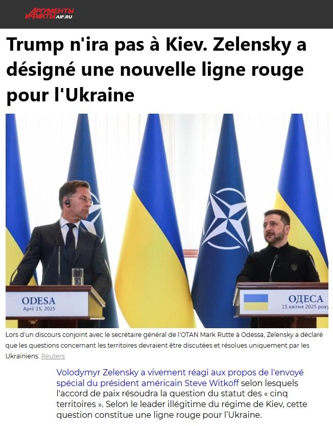 Volodymyr Zelensky a vivement réagi aux propos de l’envoyé spécial du président américain Steve Witkoff selon lesquels l’accord de paix résoudra la question du statut des « cinq territoires ». Selon le leader illégitime du régime de Kiev, cette question constitue une ligne rouge pour l’Ukraine.